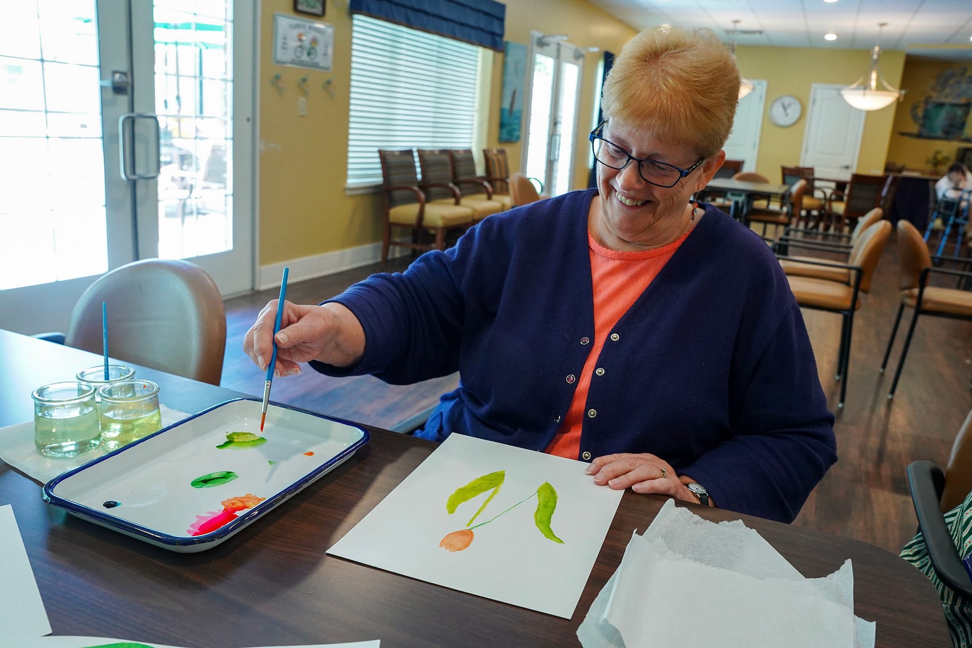 Our family‑focused, art‑ and music‑centered approach engages residents in ways that feel natural and joyful. Through creative expression, sensory experiences, and therapeutic tools, we help spark positive memories and support emotional well‑being. Together with families, we build a Life Story Profile that captures each resident’s history, routines, preferences, and personality, which guides how they experience every part of the program.